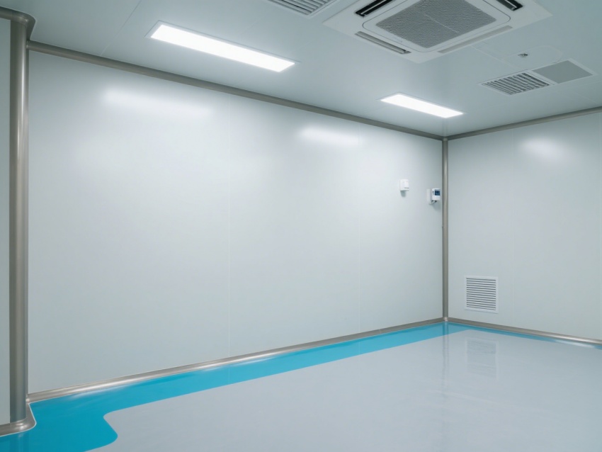 空間布局兼顧功能性與規范性,各類設施接口配置充足,圓弧墻角設計避免積塵,藍色標識線清晰劃分區域。整體工程通過溫濕度精準控制、潔凈環境打造與智能監控的協同,為電子、光學、精密制造等對環境敏感的產業提供了穩定可靠的生產空間,是保障產品品質與生產精度的關鍵支撐單元。