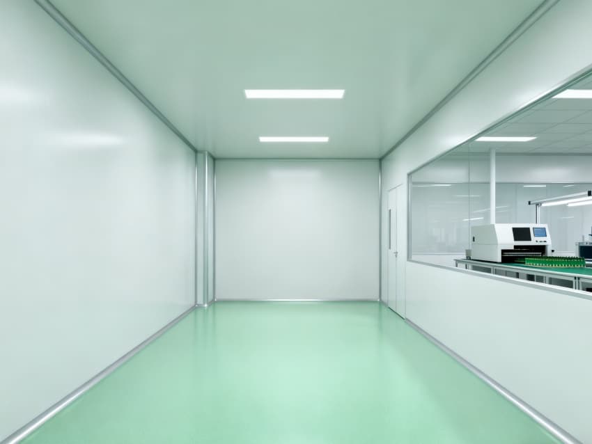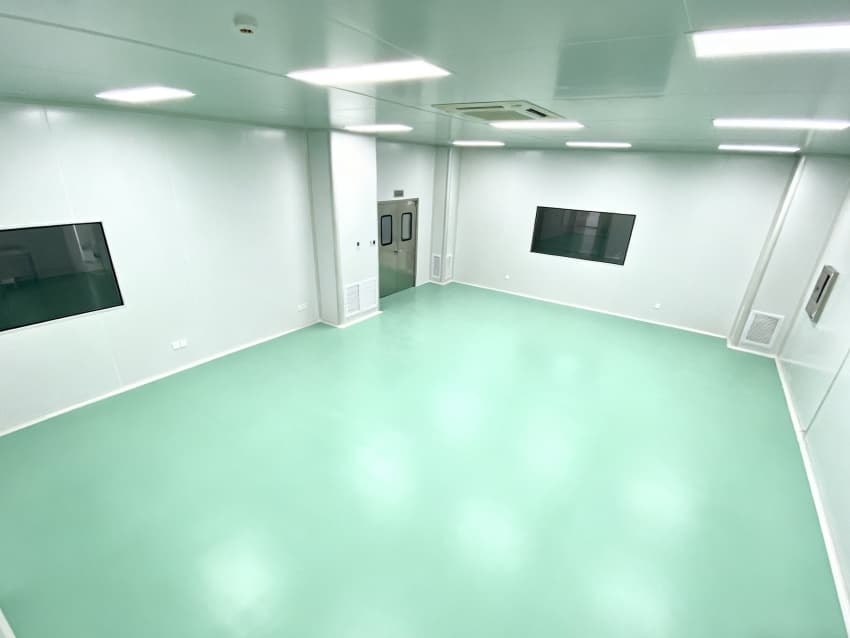 設(shè)計在環(huán)境防護上針對性突出:地面采用淺綠色防靜電環(huán)氧材質(zhì),表面電阻值控制在10^6-10^9Ω,有效規(guī)避靜電對電子零件的損傷;四周白色防塵墻壁經(jīng)啞光處理,減少光線反射干擾,配合頂部高效空氣過濾器(HEPA),可穩(wěn)定維持千級潔凈度,隔絕粉塵、微粒對精密組裝的影響。?