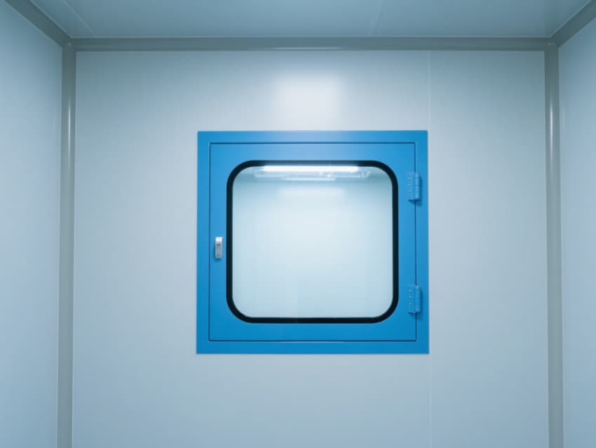 走廊與操作區(qū)通過(guò)玻璃隔斷分隔,門(mén)框與墻角均做圓角處理,配備嵌入式不銹鋼傳遞窗。地面標(biāo)識(shí)線(xiàn)采用醫(yī)用藍(lán)啞光材質(zhì),指引動(dòng)線(xiàn)的同時(shí)避免反光干擾,整體空間雖無(wú)設(shè)備,卻通過(guò)細(xì)節(jié)設(shè)計(jì)全方位展現(xiàn)醫(yī)藥生產(chǎn)的嚴(yán)苛潔凈要求。