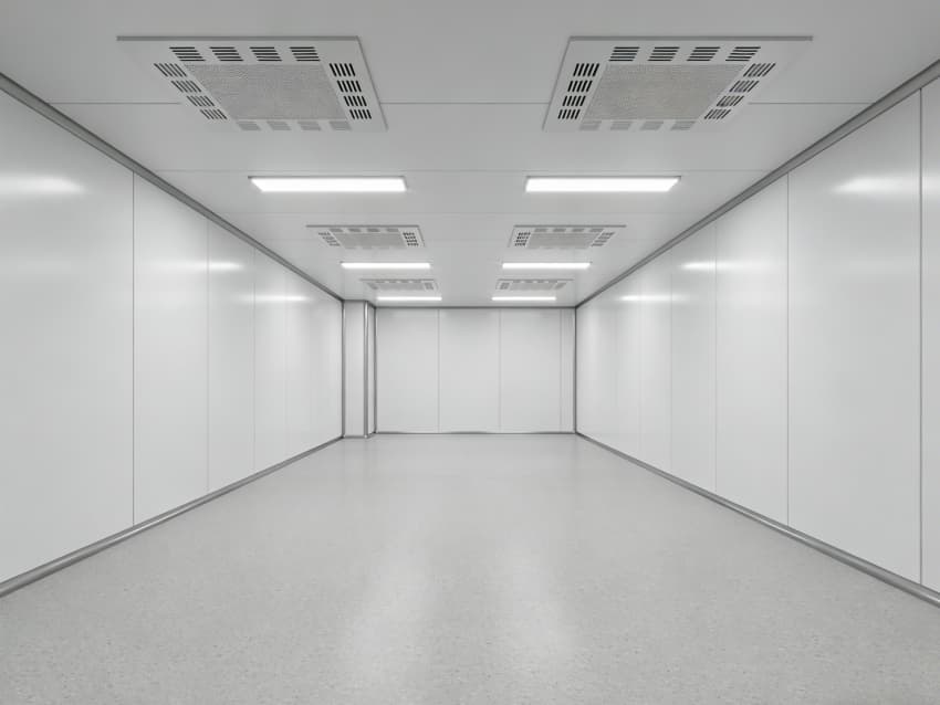 本次呈現的電子精密器件工廠車間以“高精度施工、高潔凈適配”為核心,融合多項專業施工工藝,車間內部施工工藝凸顯精密特性:地面采用淺灰色環氧防靜電自流平工藝,經基層拋丸處理、界面劑涂刷、環氧砂漿找平、自流平罩面四道核心工序,表面平整度誤差≤0.8mm/m,防靜電性能達10?-10?Ω;墻面采用白色潔凈抗菌涂層施工,推行無縫拼接技術,陰陽角采用R50圓弧倒角工藝,杜絕積塵死角,涂層硬度達2H以上,耐受頻繁清潔。