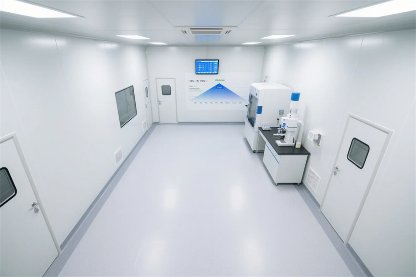 本工程嚴(yán)格依據(jù)ISO14644-1Class6(千級(jí))潔凈標(biāo)準(zhǔn)及GMP規(guī)范要求,采用"科技極簡(jiǎn)"設(shè)計(jì)理念,打造高標(biāo)準(zhǔn)的微生物檢測(cè)環(huán)境。主體結(jié)構(gòu)采用模塊化潔凈室系統(tǒng),50mm厚純白醫(yī)