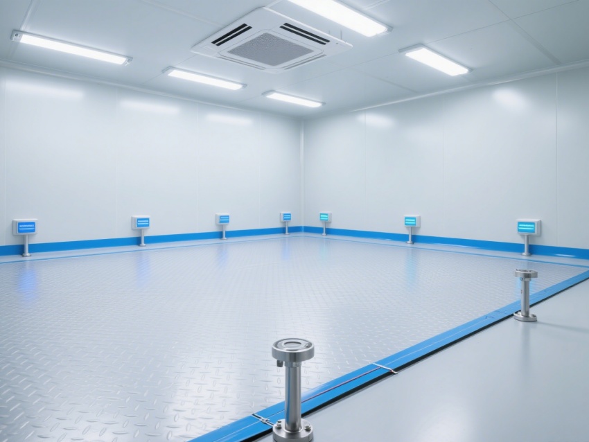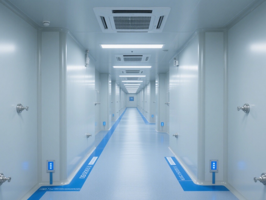 走廊采用一體化潔凈設(shè)計,地面藍(lán)色標(biāo)識線清晰規(guī)劃動線,各類管線與設(shè)備布局兼顧功能性與美觀性。整體工程通過材質(zhì)選用、空氣凈化、智能監(jiān)控的協(xié)同,為芯片檢測提供了超潔凈、高穩(wěn)定的專業(yè)環(huán)境,有力保障芯片檢測的精度與可靠性,是芯片研發(fā)與質(zhì)量把控的核心技術(shù)支撐單元。